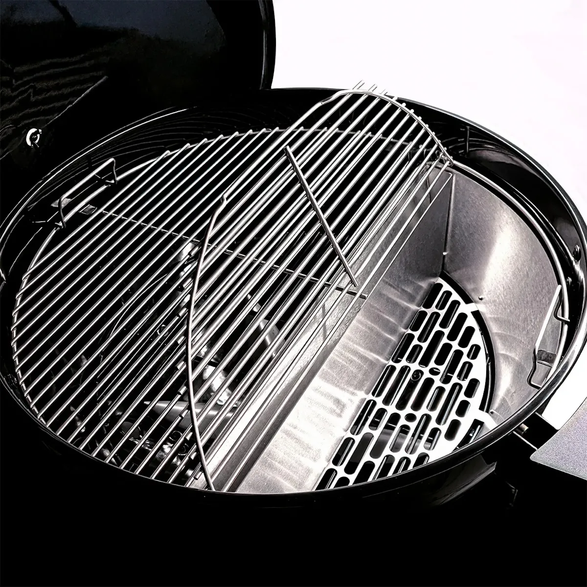 - Решітка EasySpin, що обертається (57 см). Ця міцна решітка з неіржавкої сталі 304 не тільки легка, а й найбільш зручна у використанні. Легке обертання, відкидна стулка для додавання вугілля і роботи з кошиком Slow 'N Sear.