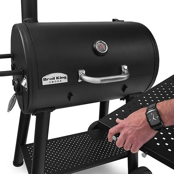 Коптильня гриль Broil King Smoke Offset 500 – вибір цінителів. Гриль коптильня, яку ми пропонуємо, дозволяє готувати всі ваші улюблені страви на грилі при низьких, повільних або високих температурах. Корпус гриля та кришка виготовлені із товщини високоміцної сталі товщиною 2 мм.