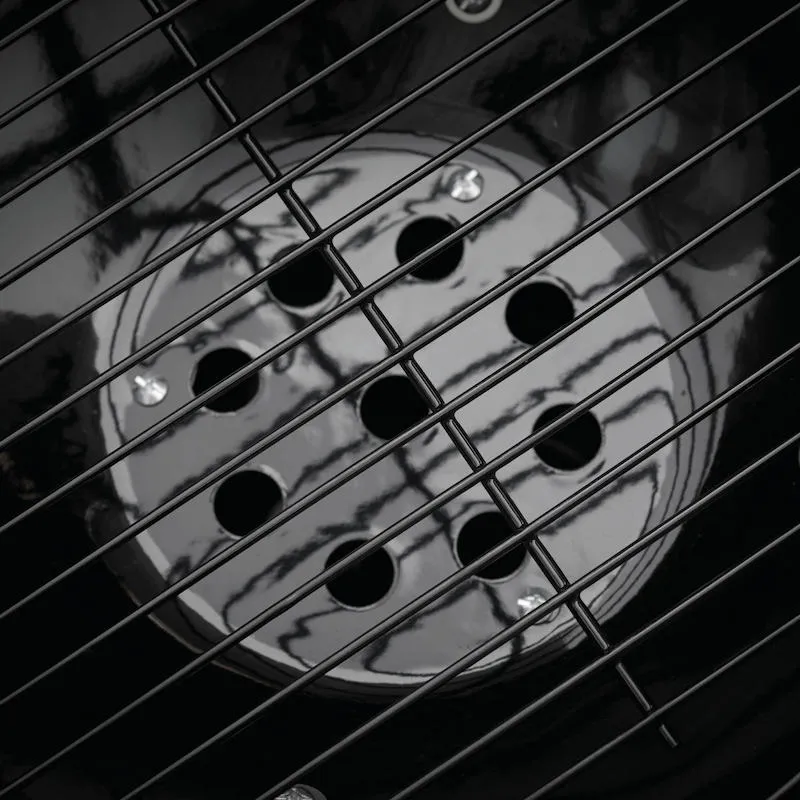 У кришку вбудований термометр, який контролює температуру готування і запобігає згорянню їжі. Ручка на кришці має екран відбивач з теплозахисними властивостями. Міцні колеса дозволяють використовувати гриль за будь-якої погоди – штовхати його можна навіть у сніг!