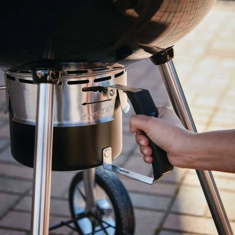Відкрийте кришку, яка фіксує тепло, і ви будете вражені великою і універсальної зоною для приготування їжі, де легко домогтися підсмажування на гарячому вугіллі прямим способом або повільного непрямого гриллінга. Вся зола потрапляє в золоуловлювач великого діаметра, який можна легко зняти і спорожнити.