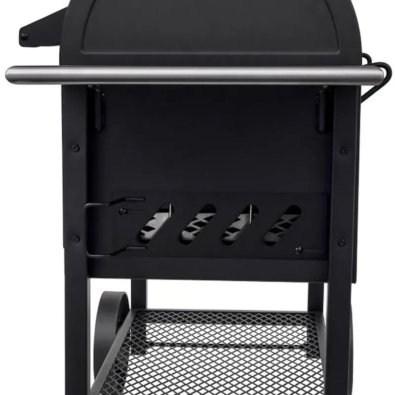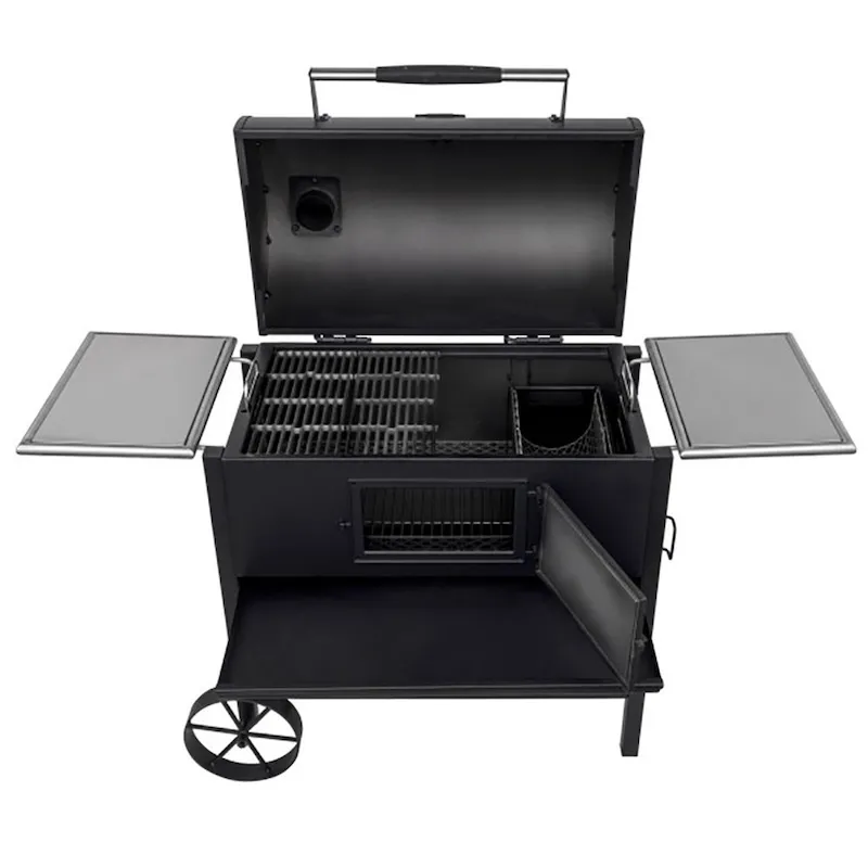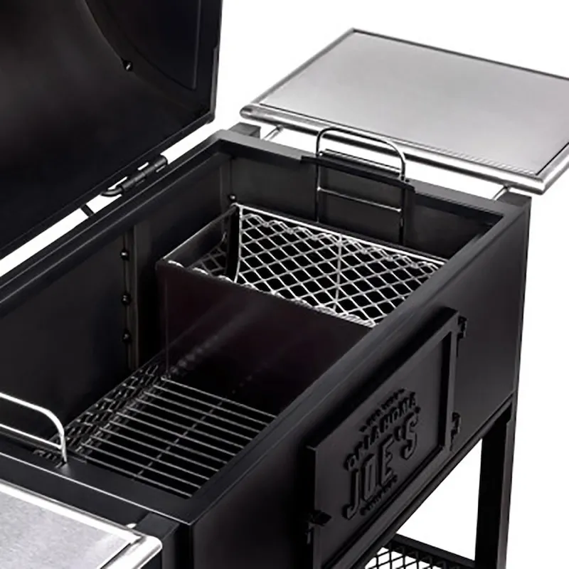 Вугільний гриль Oklahoma Joe's Judge - це неперевершена вершина серед класичних грилів. Серйозний вугільний гриль. Серйозна вага. Масивна, стійка конструкція з бічними столиками і нижньою полицею. Класична чавунна решітка. На кришці встановлено великий, легкочитаємий термометр і ненагріваюча ручка. Котел забезпечений нижньої заслінкою піддува і широкою дверкою для "управління" вугіллям. Його регульований по висоті лоток дозволяє вам вибирати між обсмажуванням на сильному вогні або повільним приготуванням за принципом "low & slow". Міцна сталева конструкція і високоякісні чавунні решітки забезпечують довговічність і надійність протягом багатьох років. Гриль можна використовувати на вугіллі, вугільних брикетах і дровах.
