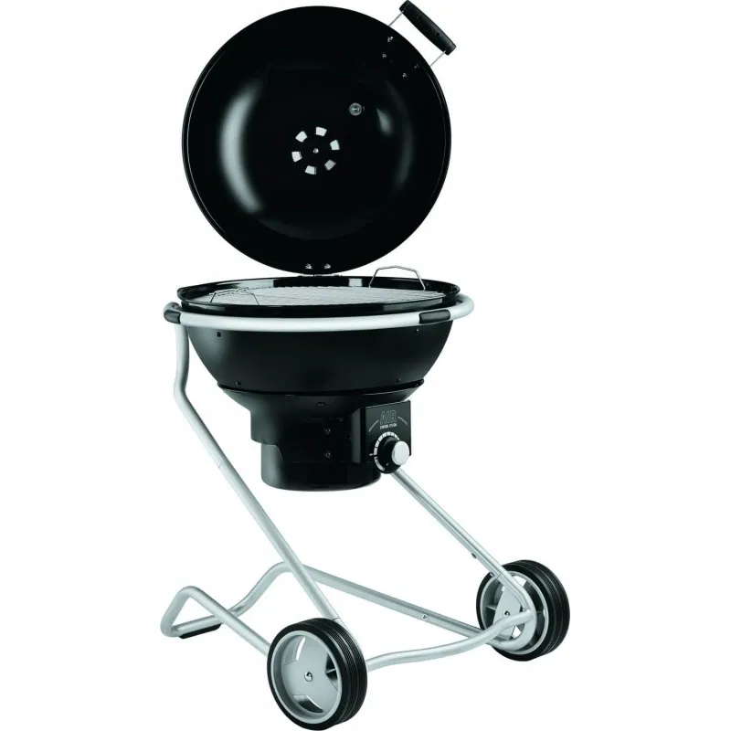 Новий вугільний гриль RÖSLE AIR F60 № 1 з поліпшеною системою подачі повітря. Як і всі моделі вугільних грилів RÖSLE, цей гриль вражає високоякісною конструкцією з міцною рамою. Робоча площа 2734 см² для одночасного приготування страв на сім'ю або компанію з 5-7 чоловік. Завдяки інноваційній запатентованій системі управління подачею повітря «AIR» Ви легко і точно відрегулюєте робочу температуру всередині гриля. Практичний шарнір кришки з кутом 45 °. Вбудований в кришку термометр - для оптимального контролю температури. Ергономічно продумана робоча висота в 84 см гарантує максимальний комфорт при користуванні грилем. Система оснащена знімною чашею для збору золи і попелу - Ви легко зможете очистити гриль. Великі колеса (Ø 20 см) з широким профілем для зручності переміщення гриля. Проста збірка - гриль поставляється частково зібраним. Roеsle F60 AIR виконаний з високоякісних матеріалів: жароміцний і стійкий до корозії корпус гриля покритий фарфорового емаллю чорного кольору.