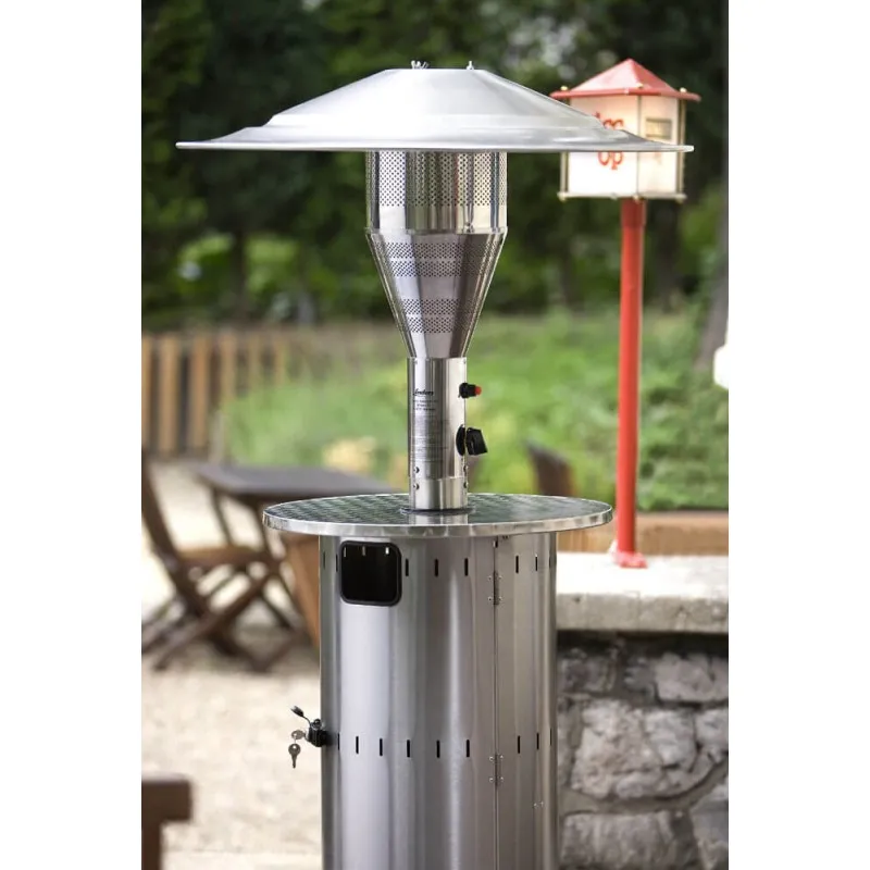 Газовий обігрівач Enders Commercial може використовуватися як в приватній, так і в професійній сфері. Відполірована нержавіюча сталь робить його стійким до атмосферних опадів і експлуатаційним пошкоджень. Потужний пальник 14 кВт - це рішення для тих, хто не любить компромісів в комфорті. Інфрачервоний газовий обігрівач Enders Commercial відрізняється високою функціональністю. Enders Commercial обладнаний столиком, завдяки якому можна перебувати безпосередньо біля обігрівача. Виїжджають платформа контейнера дозволяє легко видаляти балон і складати стійку пальника, тим самим скорочуючи висоту установки для більш зручного і компактного зберігання. Захисний замок, розташований на дверцятах контейнера, запобіжить небажане втручання в роботу газового балона, а передбачений конструкцією ланцюг захистить Ваш обігрівач від крадіжки.
