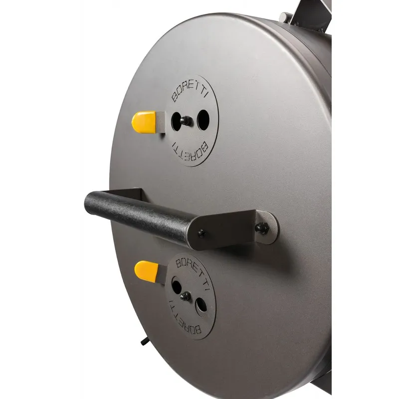 Если нравится барельный дизайн Fratello, но все же отдаете предпочтение оборудованию с большими размерами, присмотритесь к новому элегантному решению дизайнеров – большому классическому угольному грилю Boretti Barilo. Стальные стенки, встроенный термометр, просторная зона для жарки – три рабочие поверхности, съемные корзины для угля и отличная система управления жаром – согласитесь, это bbq имеет сильные «профессиональные» качества! В дополнение, его жаростойкие ручки, защищённые от перегрева, не только обеспечат удобство в момент грилования, а и позволят быстро спрятать гриль от непогоды, не останавливая приготовления барбекю-блюд для большой семьи или компании друзей.