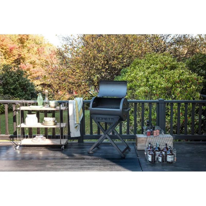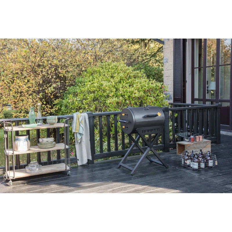 Boretti Fratello - популярная модель среди угольных грилей, потому что она обеспечивает такие выдающиеся результаты на столь небольшом пространстве. Как младший брат гриля Barilo, Fratello меньше по размеру, но все же обладает множеством удивительных функций. Барбекю имеет две решетки, две решетки для угля и большой, легко очищаемый золосборник , который позволяет избавиться от тяжелой работы. Удобный термометр в крышке помогает следить за температурой барбекю, а стильный дизайн и фирменные акценты придают ему неповторимый вид. Идеально подходит для жарки или медленного копчения. Если вам нравится классический шарм традиционного угольного гриля, но в современной интерпретации, то барбекю Fratello - Ваша идеальная мини-кухня. Благодаря уникальному дизайну Boretti Fratello также подходит для непрямого гриля и копчения. Подумайте, например, о копченом лососе на кедре. Блюда, приготовленные на небольшом угольном барбекю Fratello от Boretti, обладают аутентичным дымным ароматом.