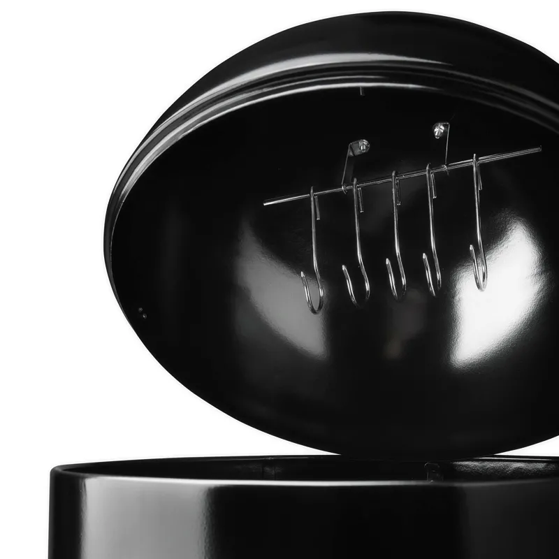 - в верхней крышке имеется горизонтальная перекладина с пятью крючками для крепления мяса, рыбы, ребрышек или сосисок;