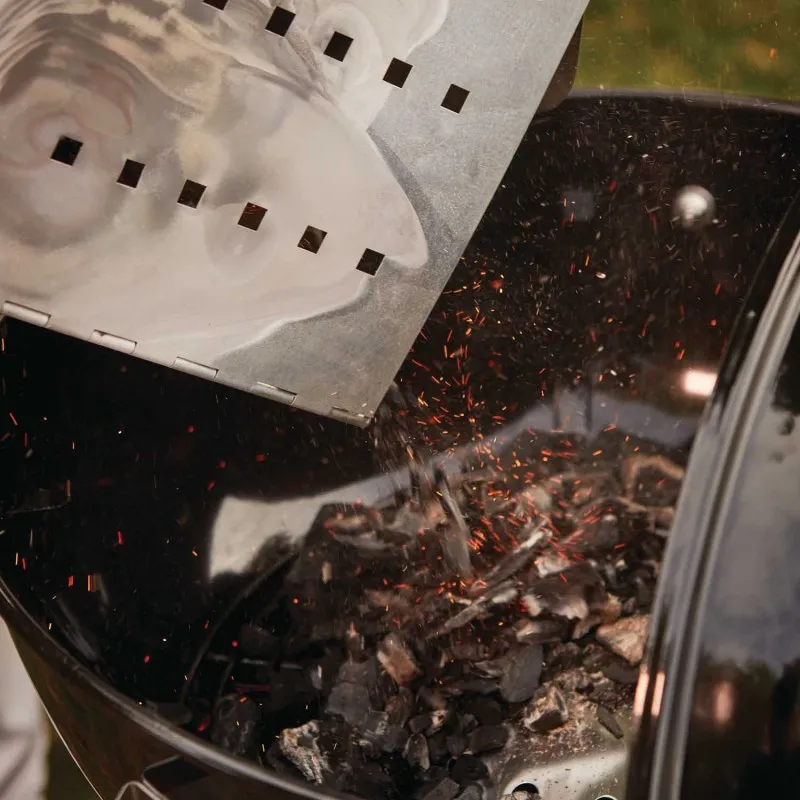 В наличии прочная стальная решетка для угля, встроенный диффузор тепла помогает выровнять воздушный поток, а навесные решетки позволяют досыпать древесный уголь во время готовки. Присутствует золоуловитель большой емкости, а для удобства хранения готовых блюд предусмотрена полка для подогрева (докупается отдельно).