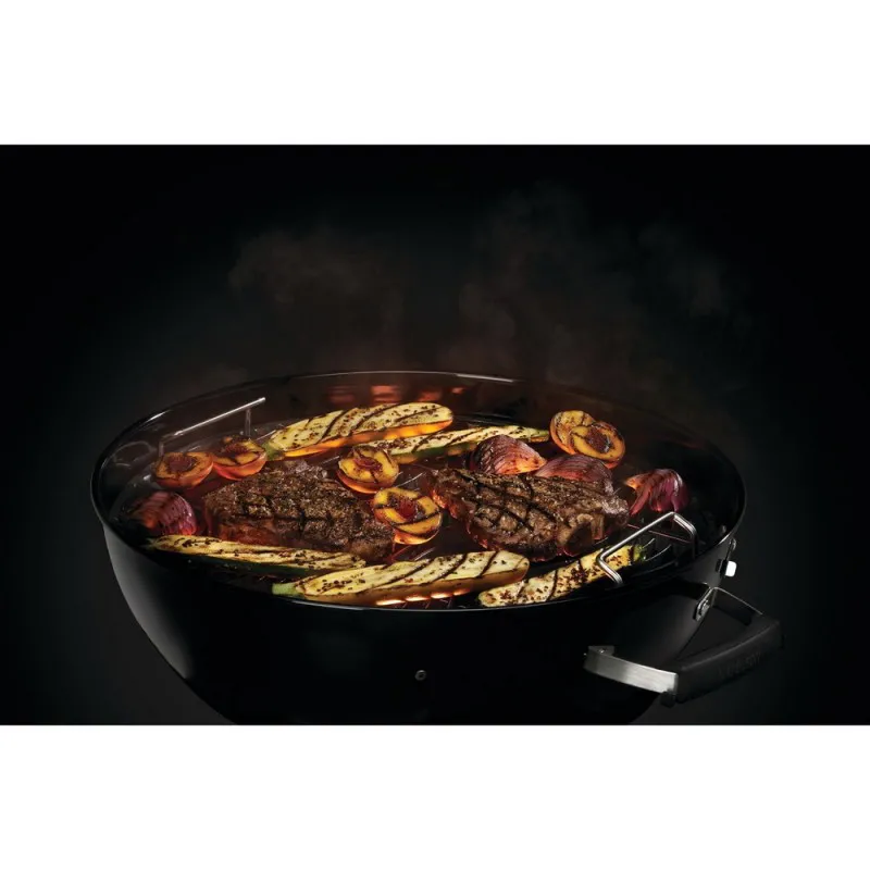 Принцип работы барбекю гриля Napoleon NK18K-LEG-3. Принцип работы гриля барбекю основан на эффективном использовании углей и оптимальной циркуляции воздуха. Система вентиляции позволяет равномерно распределять тепло по всей его поверхности, создавая идеальные условия для приготовления пищи. Гриль барбекю также оснащен термометром, встроенным в крышку, что позволяет свободно контролировать процесс без постоянного открывания гриля. Это особенно удобно при готовке крупных кусков мяса, требующих постоянной температуры и достаточного жара в течение длительного времени. Складная решетка с 2 ручками долго сохраняет тепло, позволяя обходиться без лишнего угля или щепы, делая использование топлива максимально эффективным и экономичным.