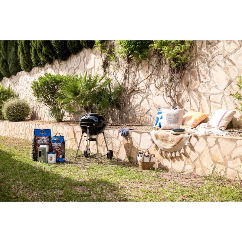 - Удобное перемещение по участку и надежная решетка для угля под грилем.