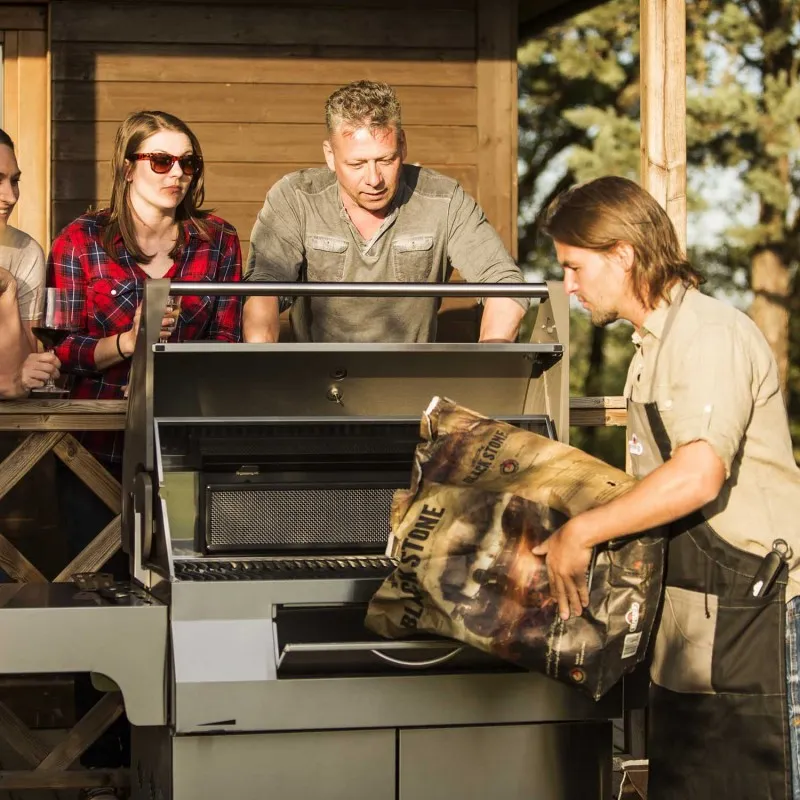 - передняя дверца для загрузки древесного угля для легкого доступа;