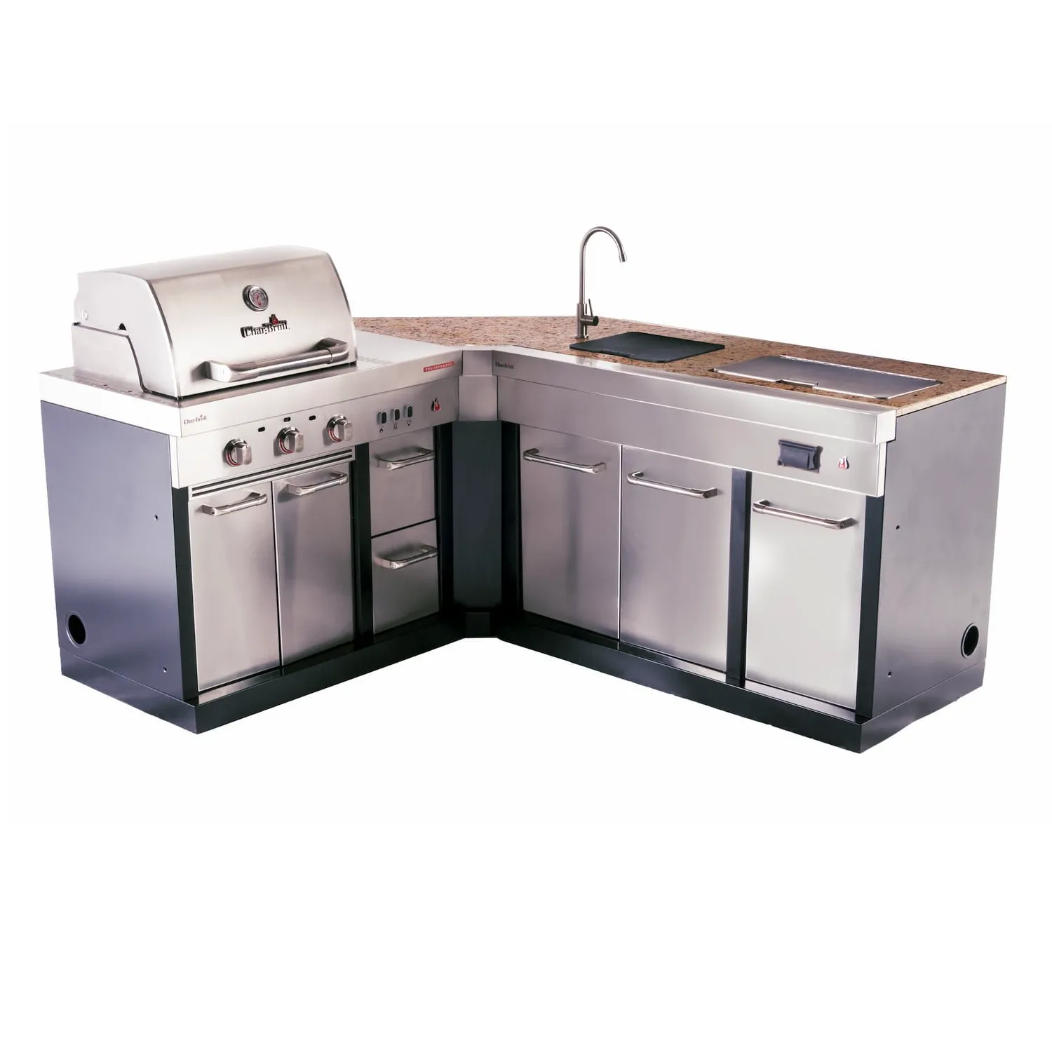 Угловой модуль Char-Broil® это дополнительные варианты конфигурации для вашей модульной уличной кухни Medallion Series™. Он подходит ко всем остальным модулям этой серии и создает бесконечные варианты дизайна. Роскошная гранитная столешница дает дополнительное пространство для приготовления пищи. Большое пространство внутри модуля, это прекрасное место для хранения объемных аксессуаров для гриля или другого садового инвентаря. Этот модуль является ключом к максимальной персонализации вашей модульной кухни на улице.