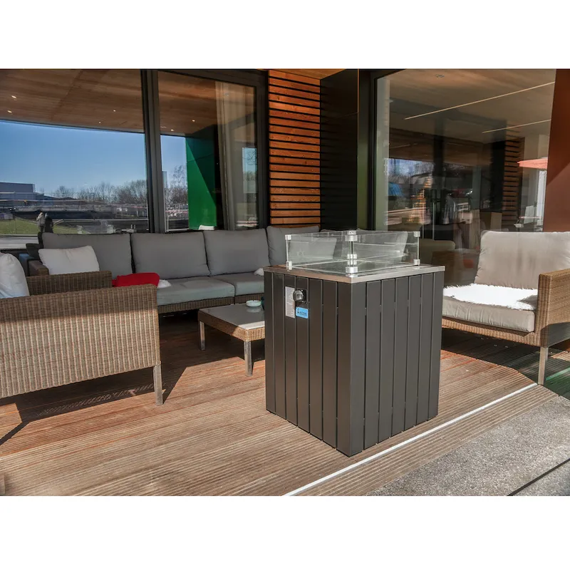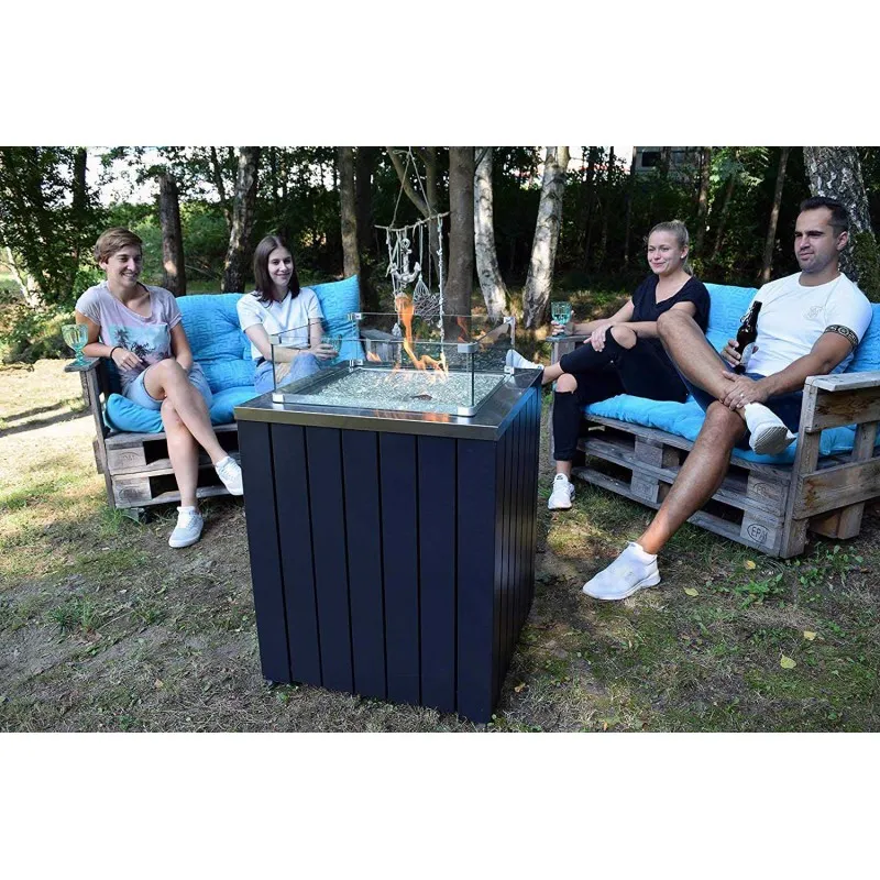 Уличные газовые камины или столы с очагом – это инновационные предметы интерьера и одновременно модное направление в дизайне террас, созданные для придания атмосферы уюта и тепла в прохладное время года! Уличный газовый камин Activa Asano украсит Ваш сад или террасу приятным светом и бликами пламени, а также станет мощным (12,5 кВт) источником тепла в холодную погоду. Использование искусственных керамических дров в камине полностью имитирует эффект «живого» очага с огнем и придает неповторимое ощущение комфорта и безмятежности. Ваши гости ни за что не поверят, в то, что дрова в камине ненастоящие – настолько правдоподобно и впечатляюще выглядит это завораживающее зрелище. В отличие от горения костра, такой камин не выделяет едкого дыма, так как газ сгорает на 100%. При желании уличный газовый камин ACTIVA Asano можно легко превратить в обеденный стол, журнальный столик или бар на открытом воздухе, для этого в комплекте есть специальная крышка закрывающая горелку.