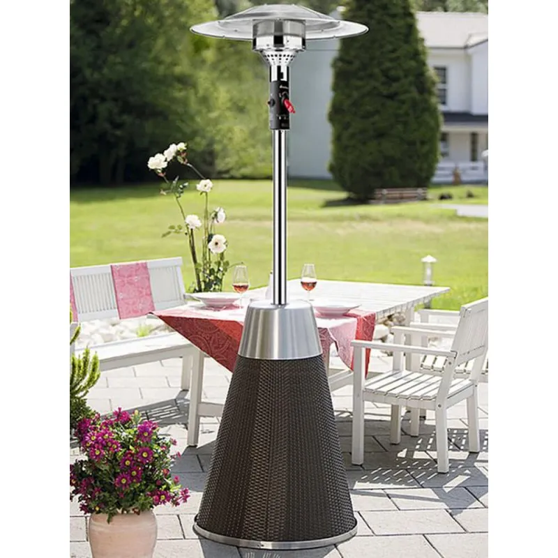 Немецкий газовый уличный обогреватель Enders Rattan. Оригинальная форма и дизайн газового обогревателя привлекает будущих пользователей своими средиземноморскими мотивами. Его округлые элегантные и утонченные формы близки к совершенству. Изящный дизайн с применением качественных материалов сделали эту модель особенно популярной. Нижняя часть контейнера выполнена из практичного эко-ротанга, а стойка и крышка контейнера изготовлены из высококачественной нержавеющей стали. Все используемые материалы устойчивы к влаге, загрязнению, ультрафиолетовым лучам и при этом удобны для ухода. Обе половины контейнера легко снимаются при поднятии крышки, что упрощает доступ к газовому баллону. Обогреватель имеет комплект встроенных колес для удобства перемещения. Быстрое и уверенное зажигание, высокая функциональность, надежность автоматики и простота сборки – отличительные преимущества инфракрасного обогревателя Enders Rattan.