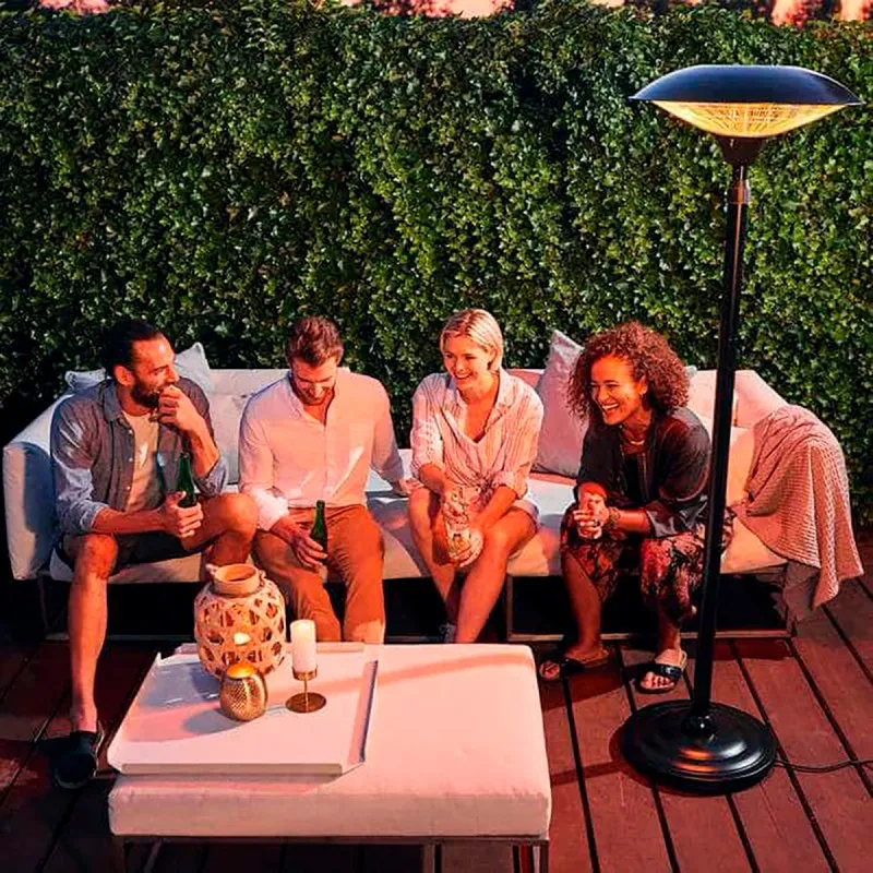 ENDERS Barcelona Black идеально подходит, как для уличного обогрева, так и для использования внутри помещений. Телескопическая трубка стойки обогревателя позволяет изменять высоту обогревателя в пределах 1,94 - 2,09 метров. Основание имеет специальную платформу с утяжелителем, что делает обогреватель очень устойчивым и предотвращает случайное опрокидывание или падение от порыва ветра. Безопасность обеспечена датчиком наклона: при падении или наклоне подача электричества прекращается и возобновляется при возврате обогревателя в вертикальное положение. Галогеновая лампа со сроком службы около 5000 часов, создает уютную атмосферу мягкого и комфортного тепла с приятным, не ослепляющим освещением и производят достаточное количество света, что позволяет использовать обогреватель еще и как источник освещения.