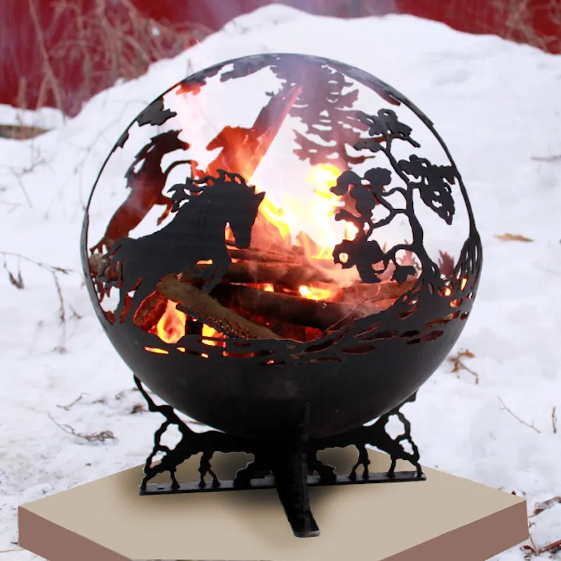 Уличный камин очаг-шар "Бегущие лошади" 500 Prescona
