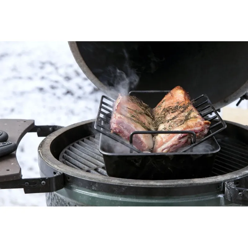Эта мультифункциональная V-образная подставка для ребрышек и мяса идеально подходит для запекания. Готовьте в ней крупные куски мяса или птицу на медленном огне. В перевернутом виде она как нельзя лучше подойдет для свиных ребрышек. Постоянная циркуляция воздуха вокруг подставки для ребрышек и мяса дает восхитительные результаты. Этот аксессуар должен быть в арсенале каждого мясоеда.