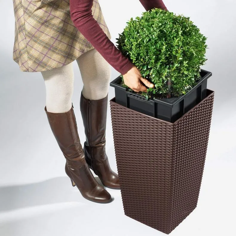 Высокое кашпо в форме колонны CUBICO Cottage благодаря разнообразным возможностям применения очень ценится для оформления различных композиций на террасе. Благодаря приобретаемым отдельно подставкам на роликах озеленение становится мобильным также и вне помещений.