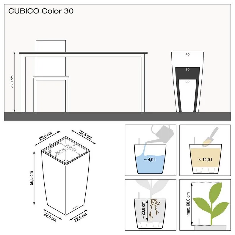 Вазон Lechuza 13138 CUBICO Color 30 Серый