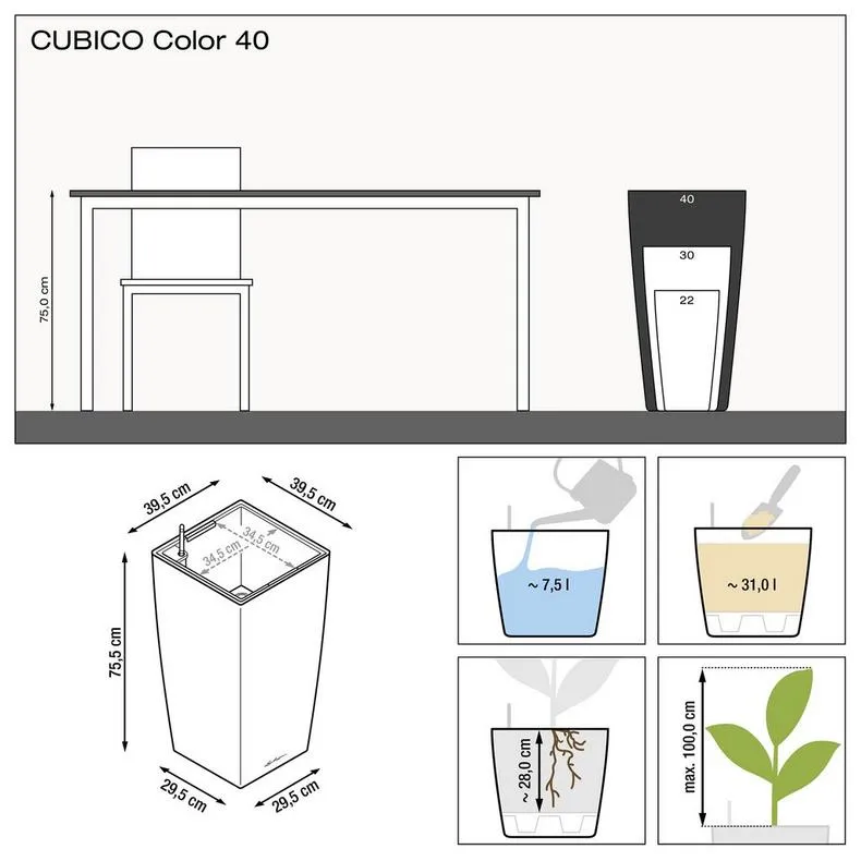 Вазон Lechuza 13158 CUBICO Color 40 Серый