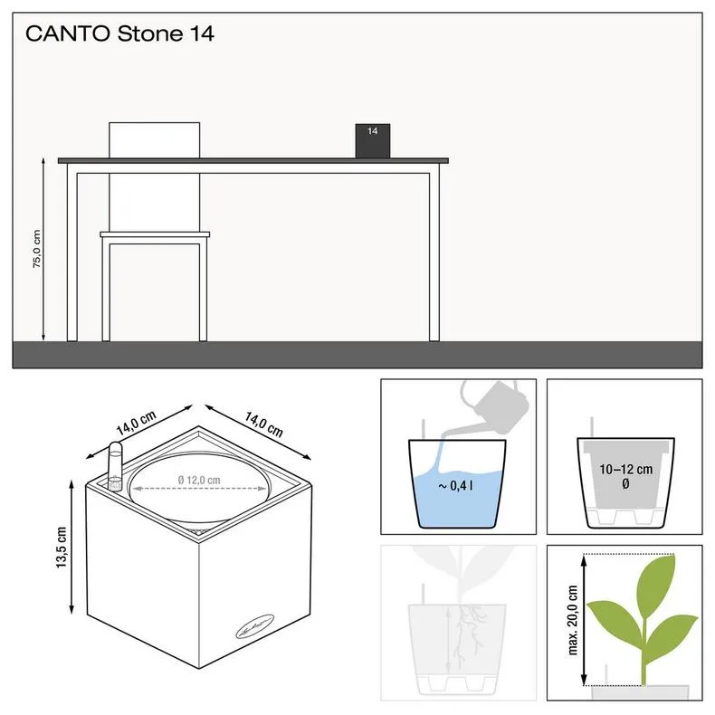 Суккуленты на полке, травы в зоне патио или зеленая лилия на столе ‒ CANTO Stone 14 превращает каждое растение в эффектную композицию. Контраст природной фактуры кашпо и растений придает пространству большой эффект. В размере CANTO 14 идеально подходит для небольших полок, сервантов или столов.