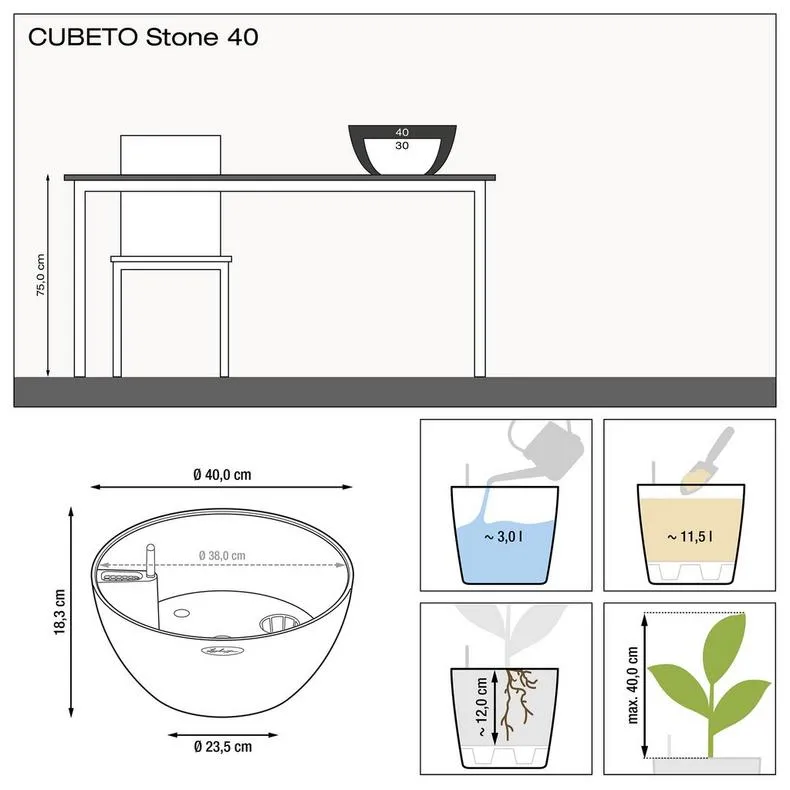 Вазон Lechuza 13840 Cubeto Stone 40 серый камень