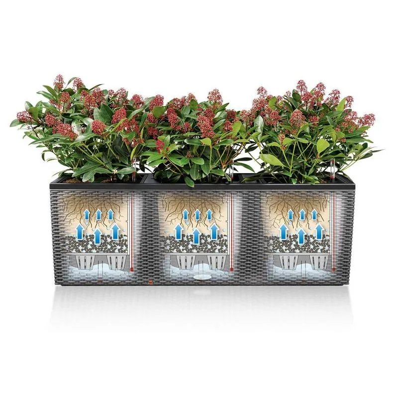 Кашпо TRIO Cottage 30 и в размере 40 – отличный вариант для выращивания вьющихся композиций, а также для зонирования террас, общественных и частных пространств. Изготовлено из качественного пластика, выдерживает большие перепады температур, непогоду и не выгорают под УФ-лучами.