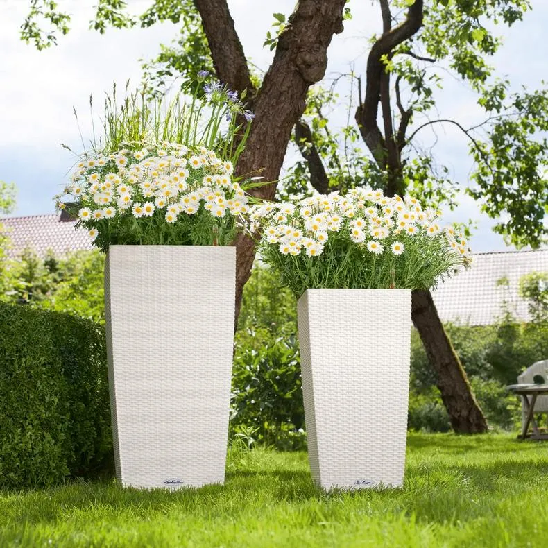 Высокое кашпо в форме колонны CUBICO Cottage благодаря разнообразным возможностям применения очень ценится для оформления различных композиций на террасе. Благодаря приобретаемым отдельно подставкам на роликах озеленение становится мобильным также и вне помещений.