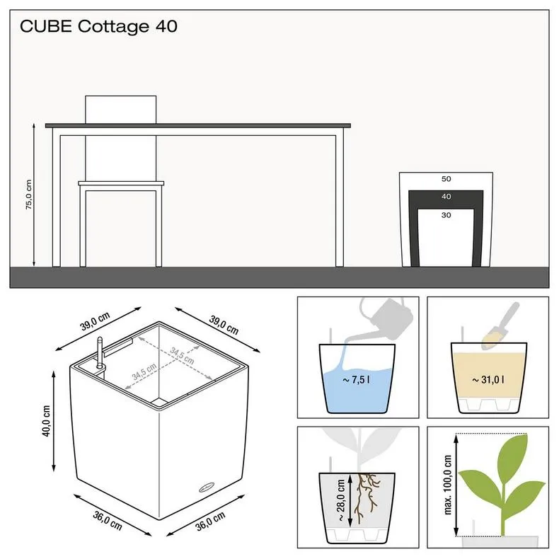 - Сепаратор для кашпо CUBE 40 также подходит для кашпо CUBICO 40, CUBICO Alto и TRIO 40