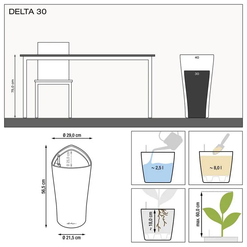 LECHUZA DELTA объединяет технологии и дизайн: спрятанная в кашпо система автополива LECHUZA надолго обеспечивает Ваши растения водой.
