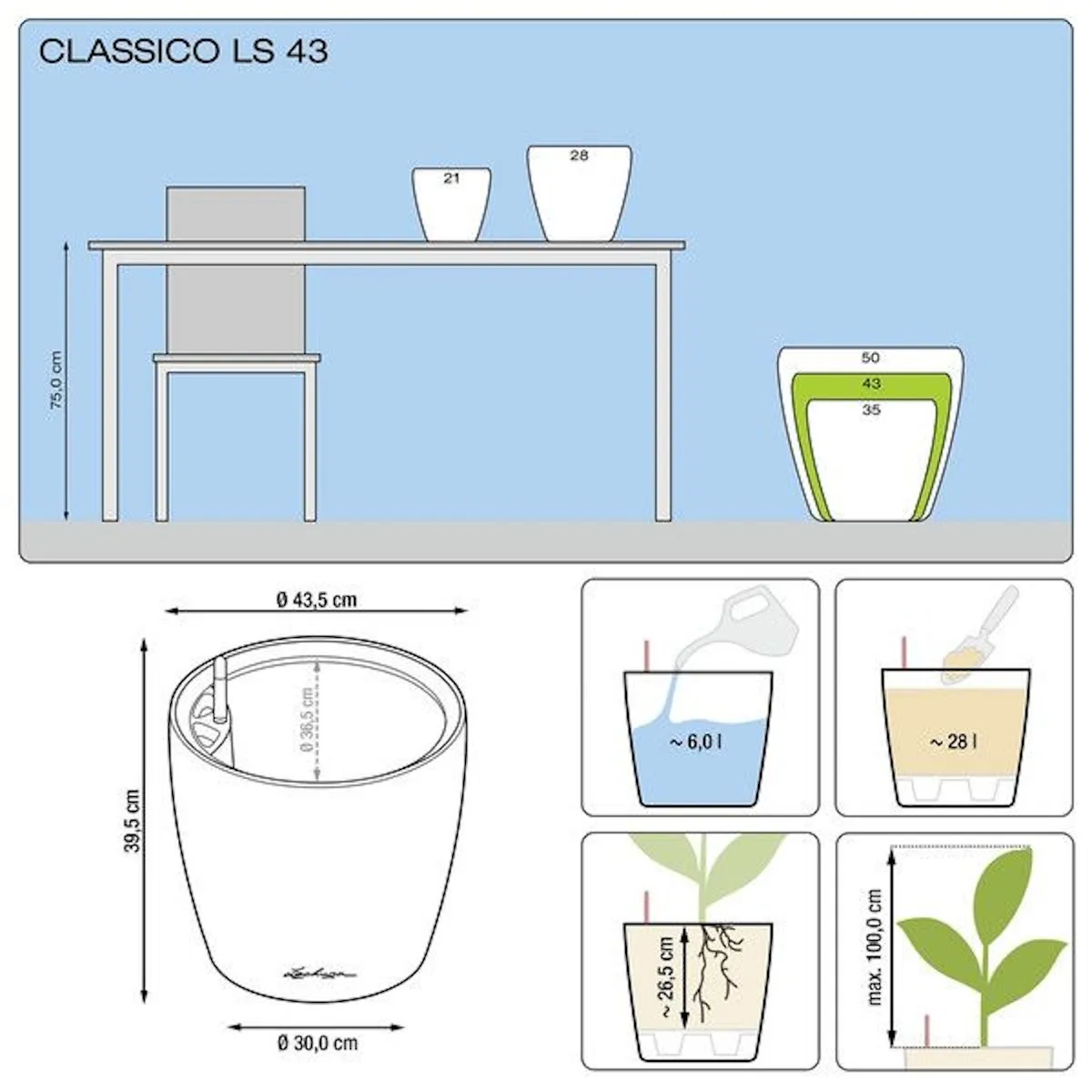Для лёгкой замены и пересадки растений некоторые модели линии CLASSICO LS предлагаются с пересадочным горшком. Какое бы помещение Вы не озеленяли, Вы всегда найдёте тот вариант, который Вас устроит.