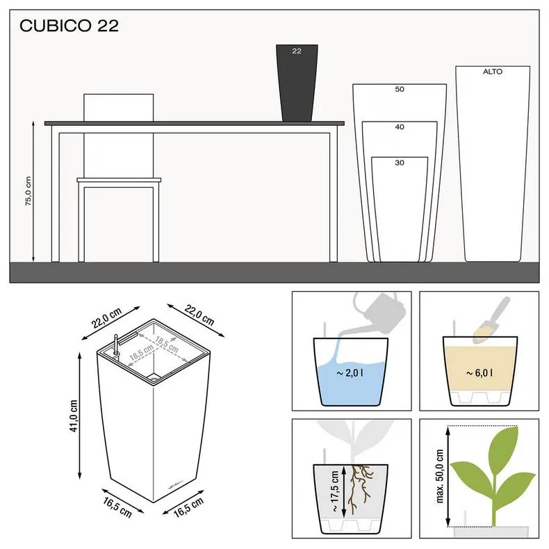 - Сепаратор для CUBICO 40 также подходит для кашпо TRIO 30 и CUBICO 40, а сепаратор для кашпо Альто может использоваться с сериями CUBE и TRIO 40