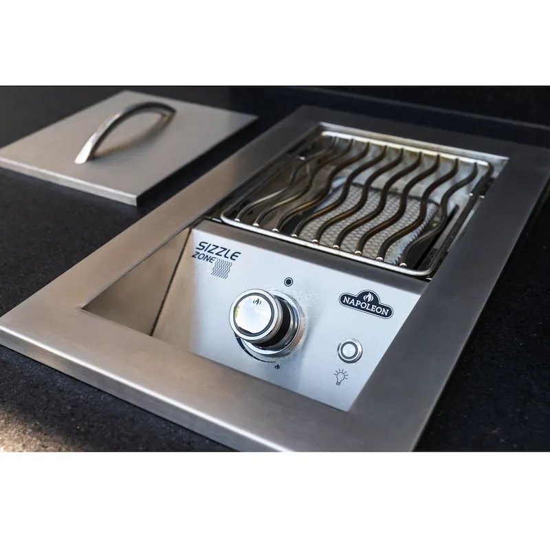 Инфракрасную зону SIZZLE ZONE™ можно использовать для идеального обжаривания мяса или для приготовления гарниров и соусов во время работы основного гриля. Эта горелка для идеальных стейков и отличного рисунка на стейке. Эта встраиваемая инфракрасная горелка SIZZLE ZONE™ обжаривает сочные стейки до совершенства ресторанного качества. Благодаря встроенной зоне Sizzle Zone от Napoleon вы можете интегрировать идеальную горелку для стейков в свою кухню под открытым небом. При температуре до 800 °C продукты, приготовленные на сковороде, очень быстро готовятся с хрустящей корочкой, очень сочные и с прекрасными следами от гриля.