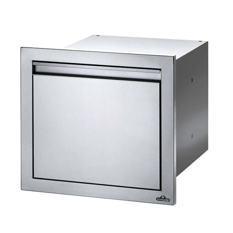 Выдвижной ящик Наполеон обеспечивает впечатляющий вариант хранения для использования с вашим островком для гриля Napoleon. Этот компонент имеет прочную конструкцию из нержавеющей стали и рассчитан на длительный срок службы.