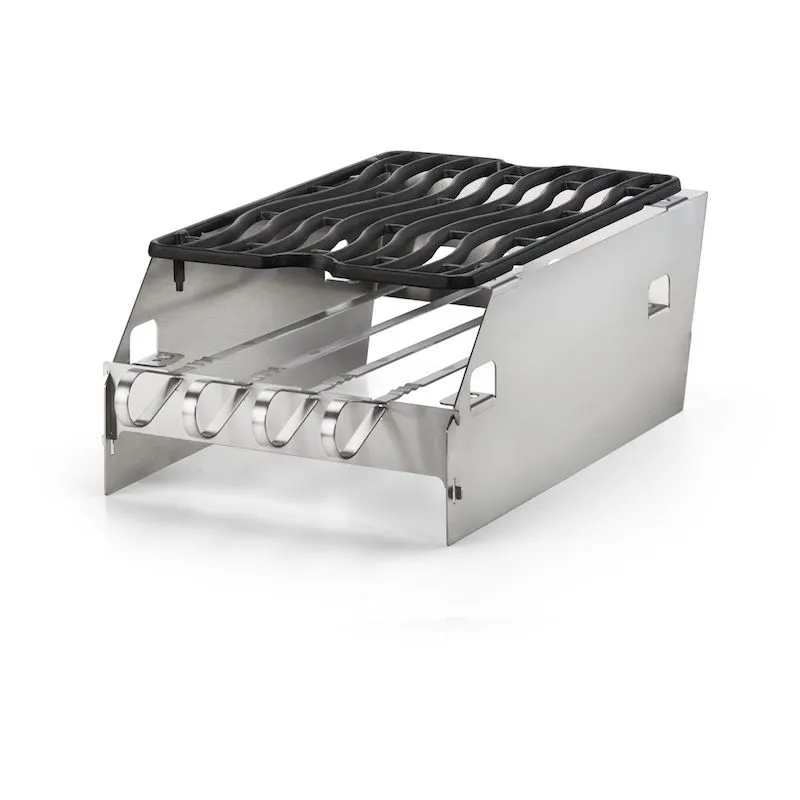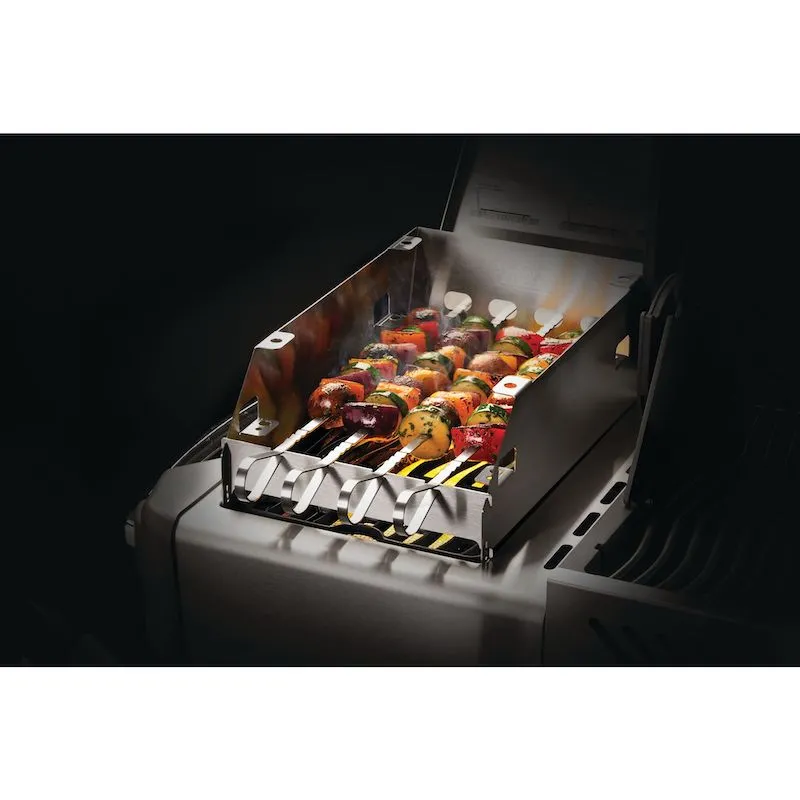 Многофункциональная ветровая защита для боковой горелки Sizzle Zone в грилях Napoleon. Даже при сильном ветре Sizzle Zone будет стабильно гореть. Решётку гриля можно установить в три дополнительных положения. Переднюю панель можно сложить, чтобы облегчить доступ к щипцам для барбекю. Кроме того, встроен держатель для шампуров, что позволяет жарить шампуры над керамической горелкой без прямого контакта с решеткой.