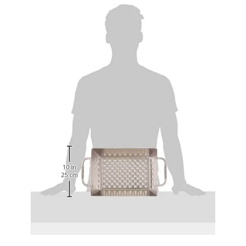 Благодаря специальным отверстиям на дне изделия, лишняя жидкость или жир будут свободно стекать, а продукты не прилипнут в процессе приготовления. Высокие бортики препятствуют выпадению пищи и позволяют легко перемешивать ее.