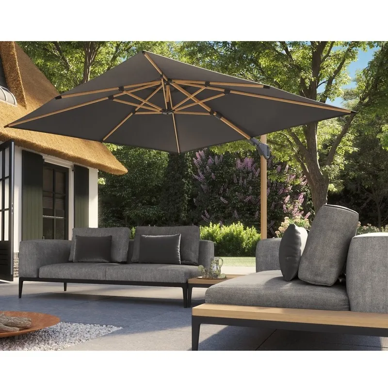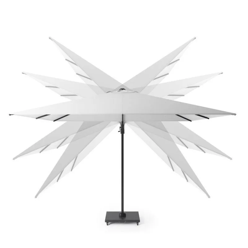 Challenger T2 является флагманом нашей коллекции. Стильный и роскошный дизайн без компромиссов, разработанный с учетом комфорта. При минимальных усилиях этот зонтик может вращаться, наклоняться и поворачиваться. Бесступенчатый боковой наклон с внутренней частью из нержавеющей стали позволяет поворачивать зонтик к солнцу, не перемещая зонтик. Управлять навесом еще никогда не было так просто. Пружины растяжения на ребрах обеспечивают плотную посадку навеса. Прочная опора и литой алюминиевый корпус поворотного механизма гарантируют надежную конструкцию и долгие годы удовольствия от вашего зонтика. Материал класса 3, 100% полиэстер, 300 г / м2.